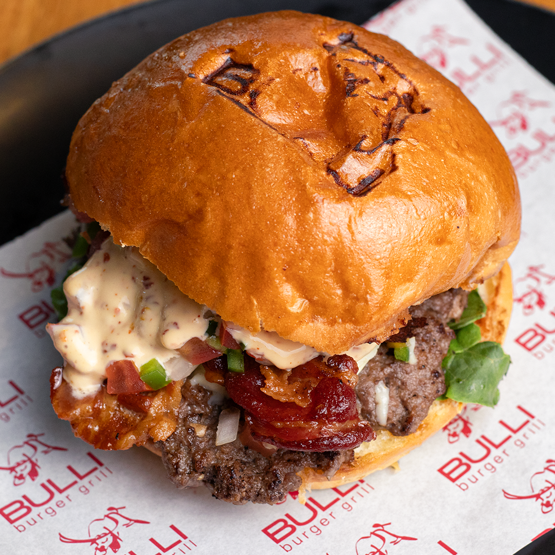 Guacamole, salsa bandera, mozarella, tocino, mayonesa chiltepín, lechuga, tomate, cebolla.
